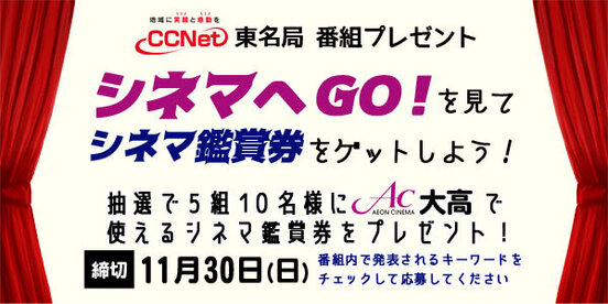 [東名局]「シネマへGO!」プレゼント情報(11月分)