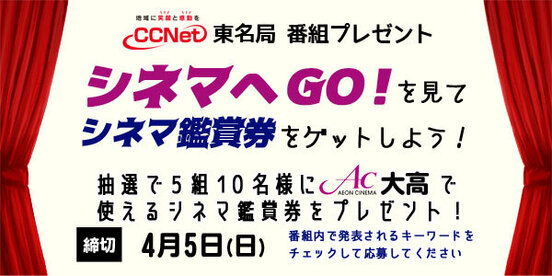 [東名局]「シネマへGO!」プレゼント情報(3月分)