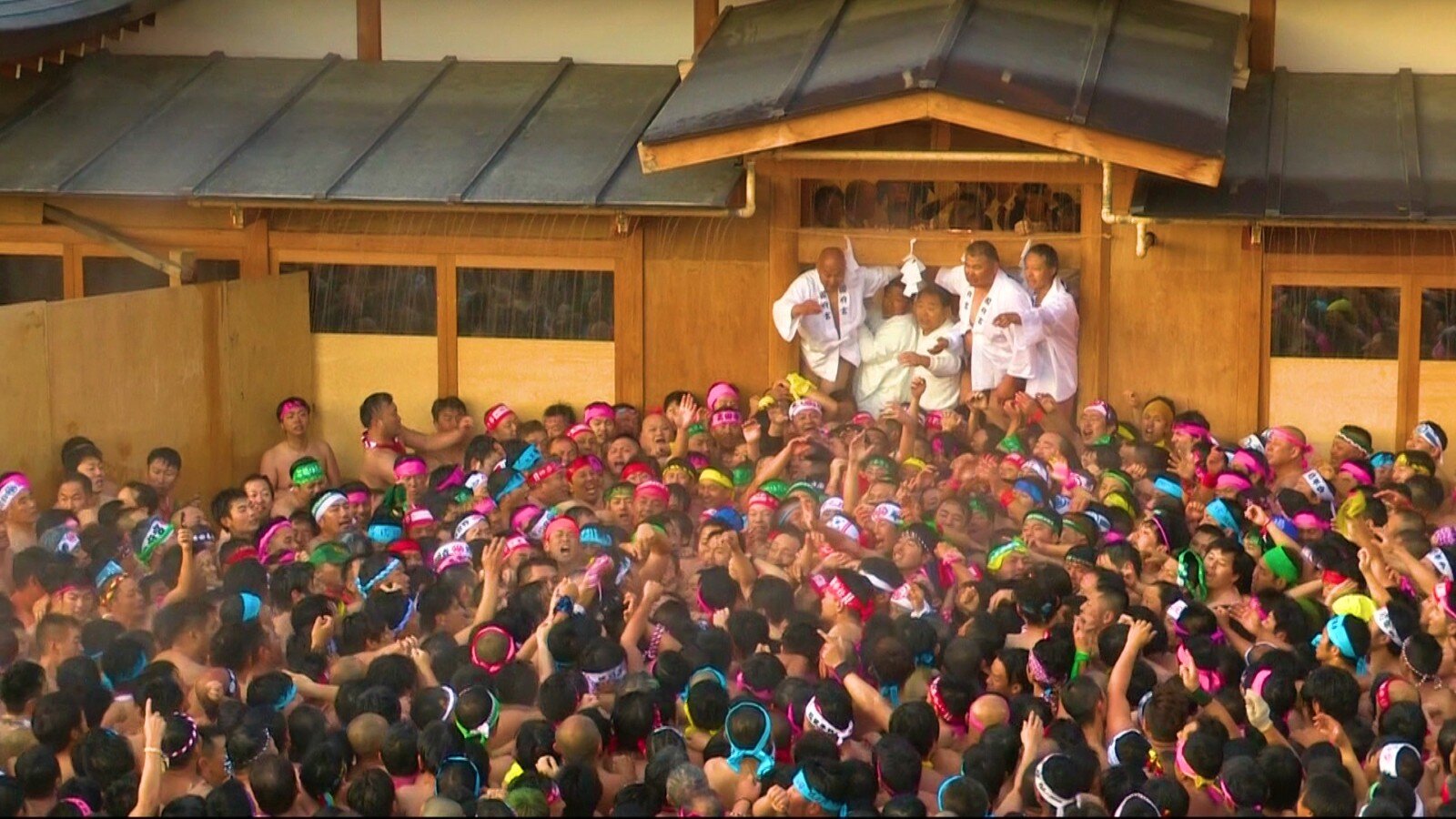 神男(しんおとこ)に触れようと激しくぶつかりあう、はだか男たちの熱気を生中継でお届け!神男(しんおとこ)が儺追殿(なおいでん)に到達するまでカメラを回し続けます!!